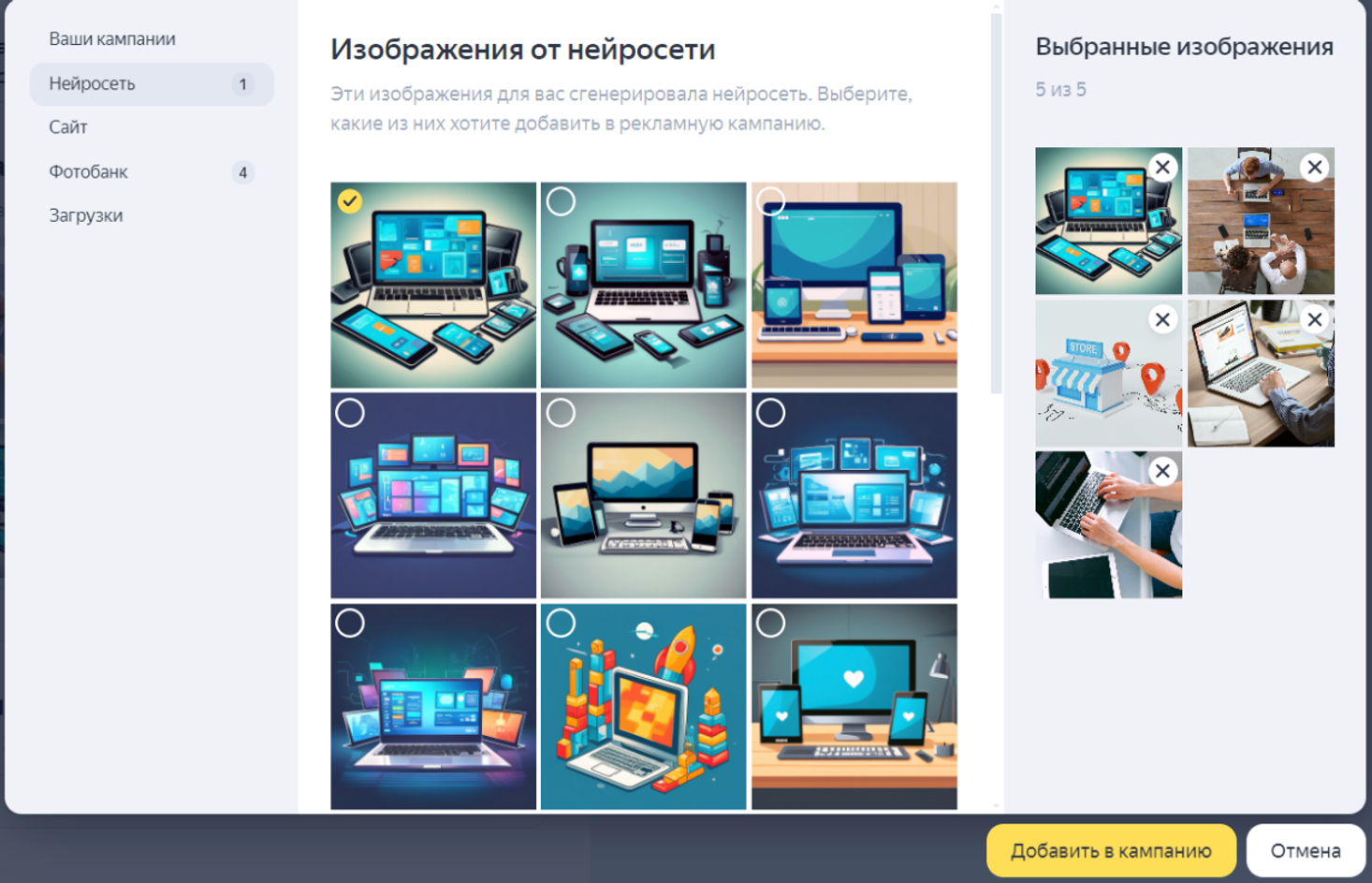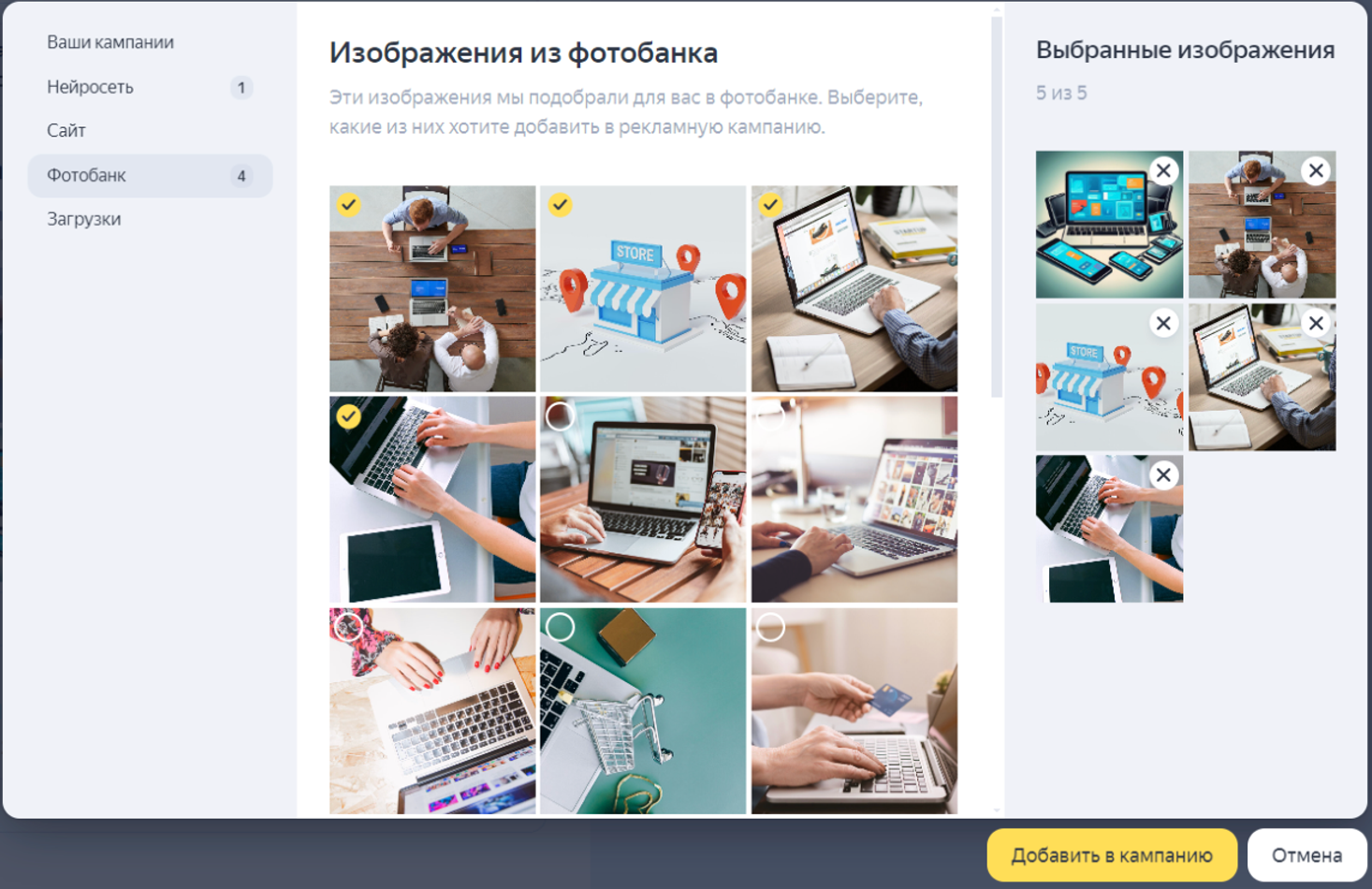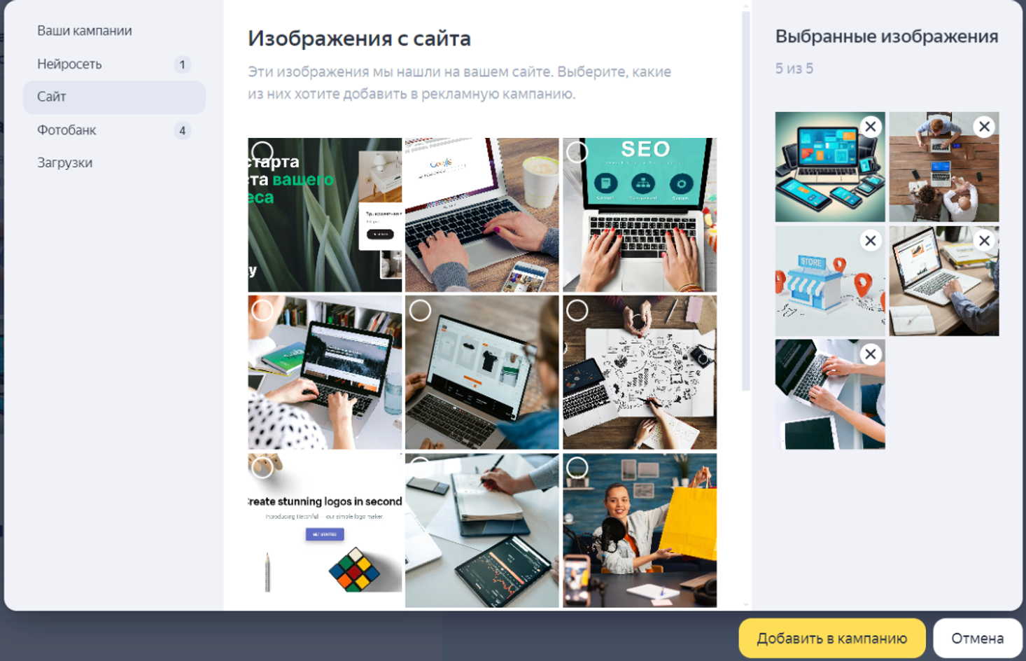 После того, как вы определились с изображениями, просто нажмите «Добавить в кампанию».