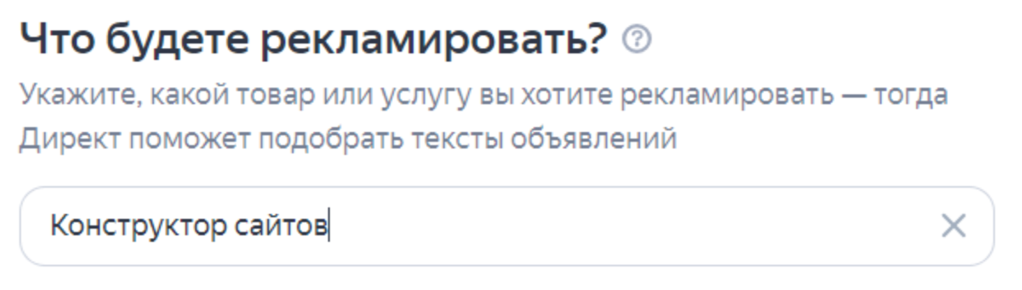Расскажите, что вы собираетесь рекламировать. Это поможет Яндекс.Директу лучше понять, что вы предлагаете, и как лучше настроить вашу рекламу.