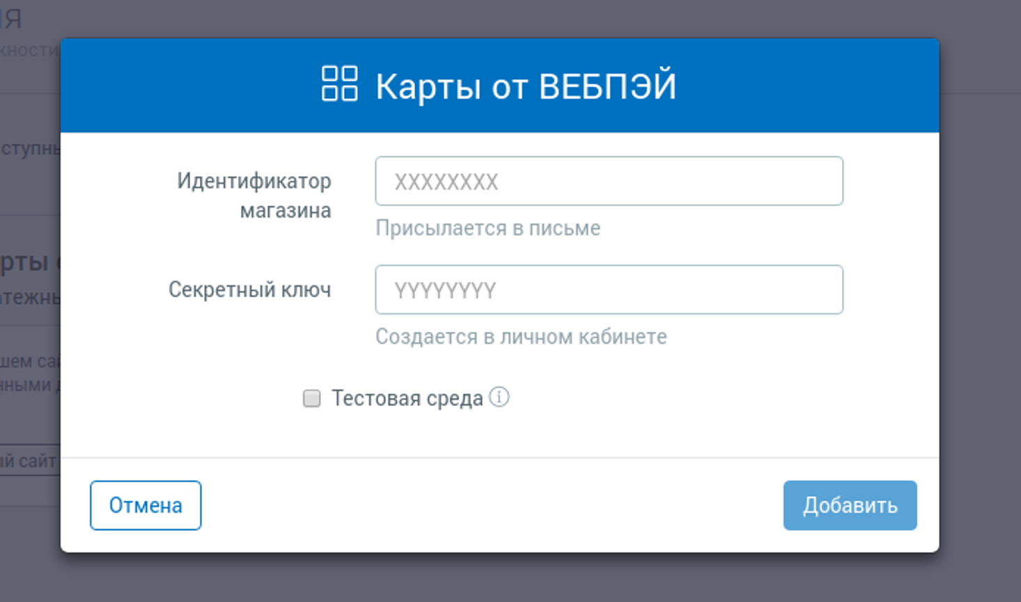 Как и у других платежных шлюзов, которые мы уже подключили: bePaid и ArtPay, вся интеграция делается нами автоматически, клиенту нужно только указать реквизиты, которые он получает при настройке приема онлайн-платежей в кабинете WEBPAY.