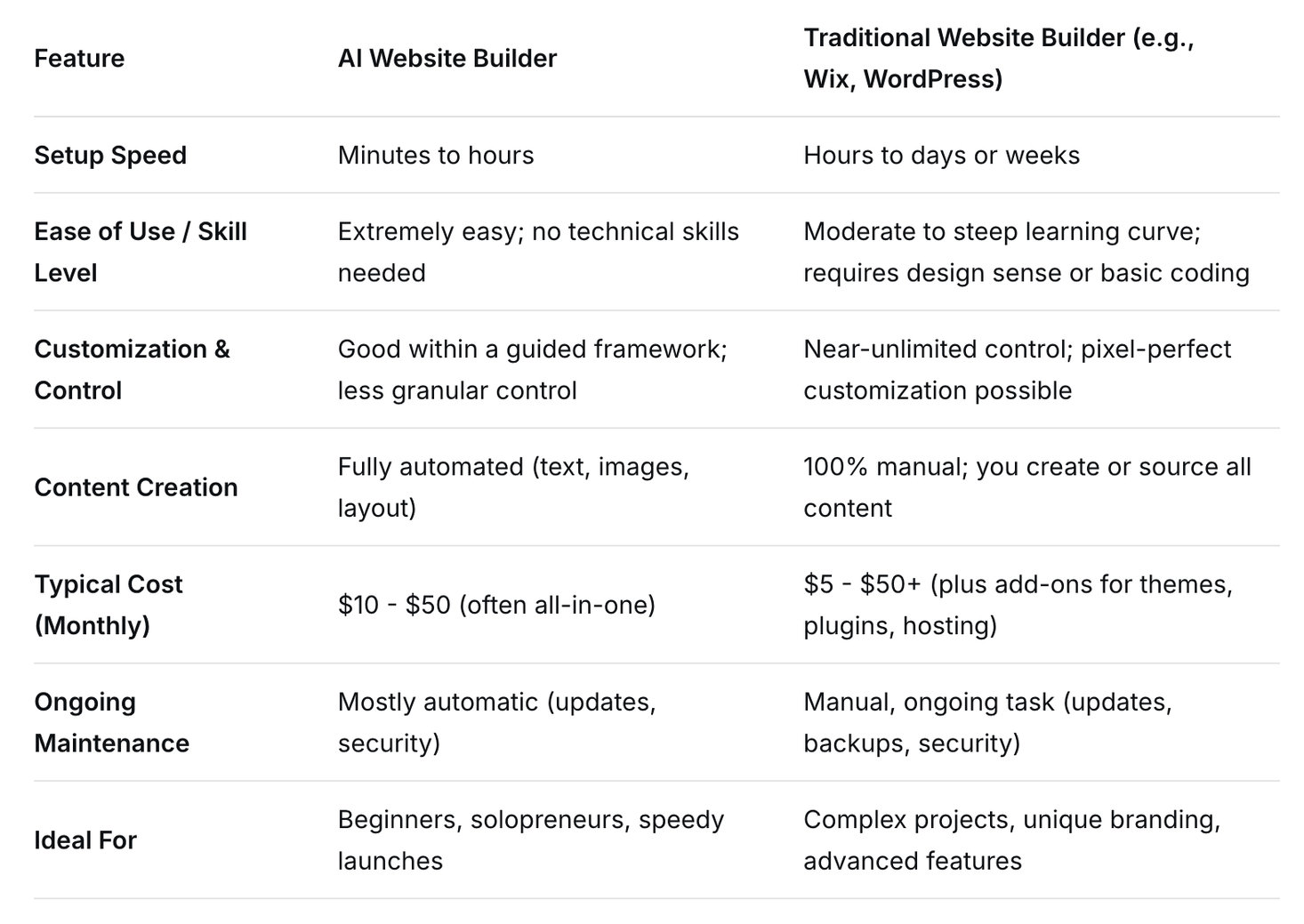 Let’s cut through the hype and look at what really matters in the AI vs. Traditional Website Builders 2025 showdown.