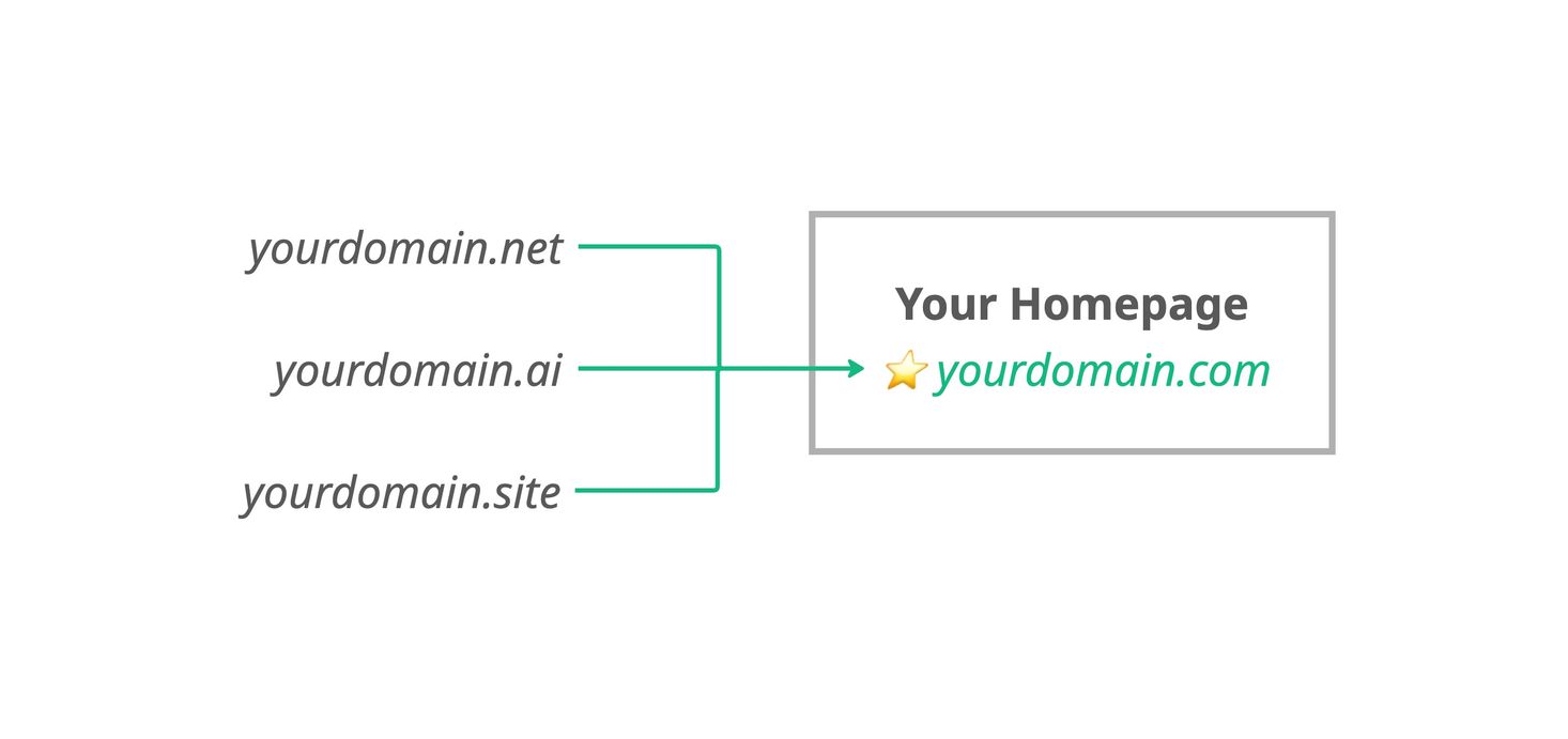 In 🌱kvitly, you can connect all of these domains to a single website. One will always be the Main (Canonical) domain – this is your primary address. The other domains will automatically redirect visitors to your main domain.