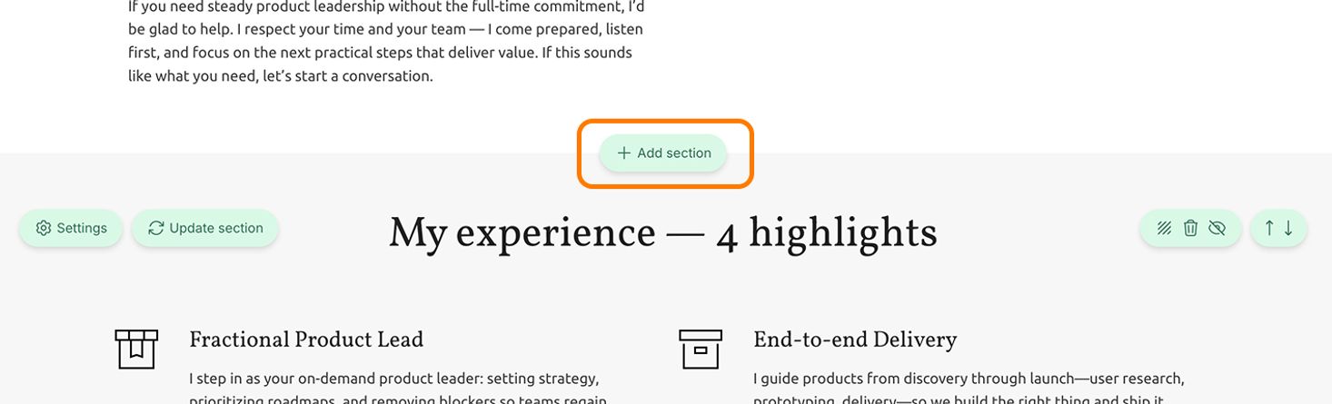 3. Once the section is added, click on the widget to open its settings.
