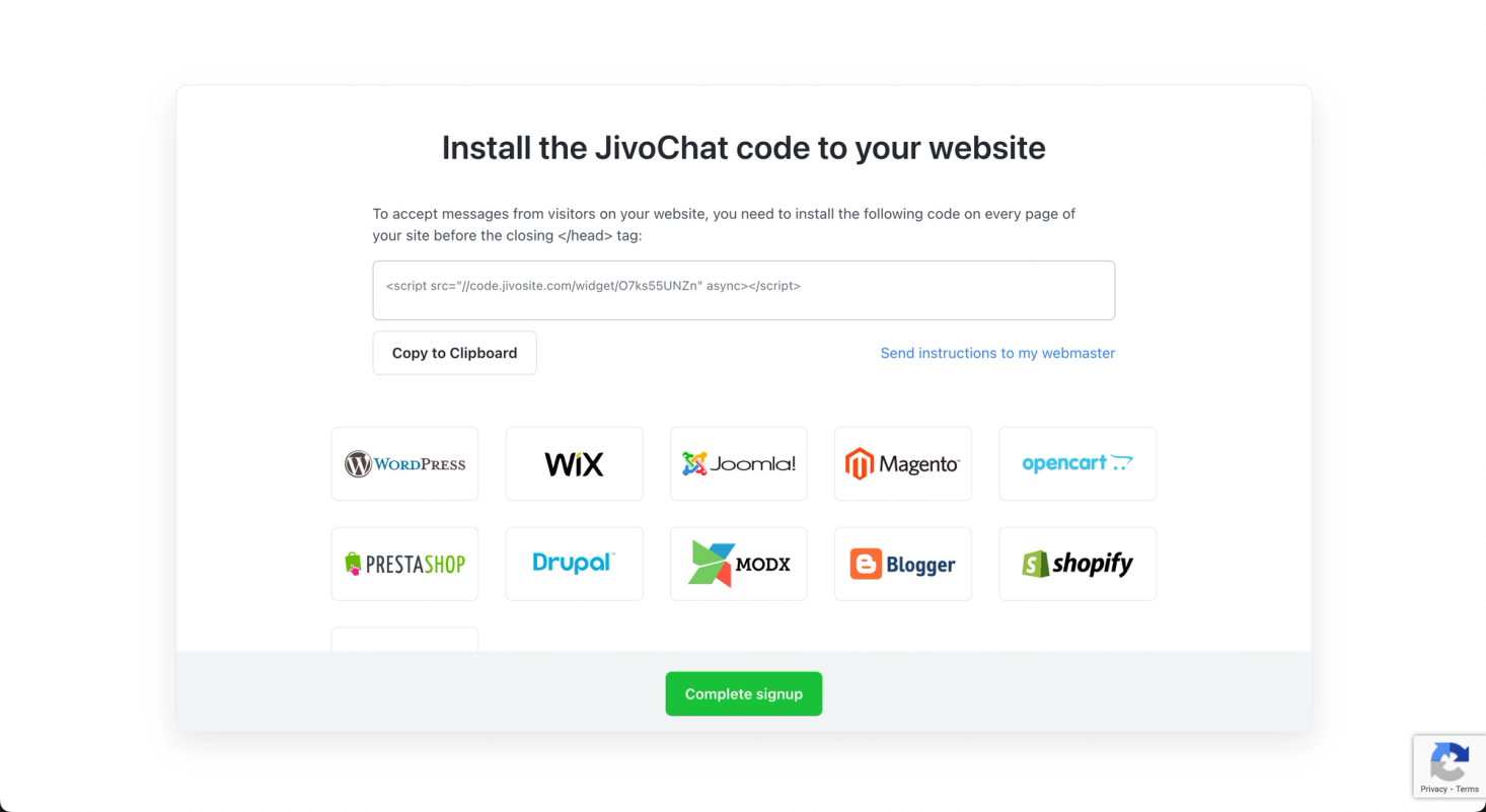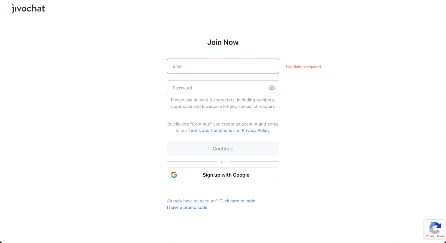 1. To register in jivochat system, enter your email on the main page of the service and complete the installation funnel there.