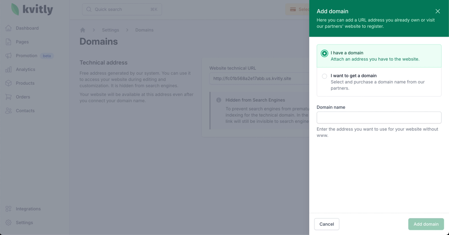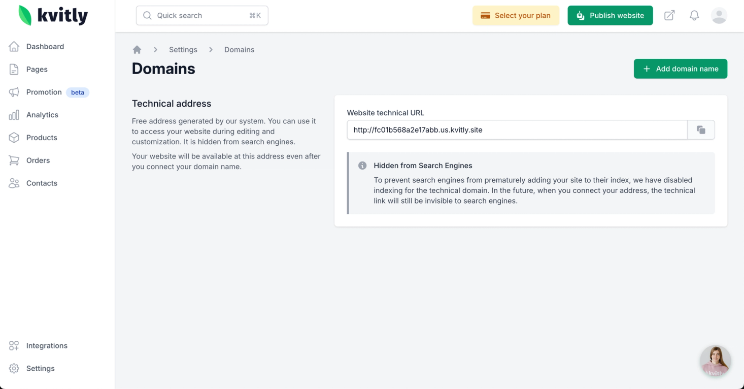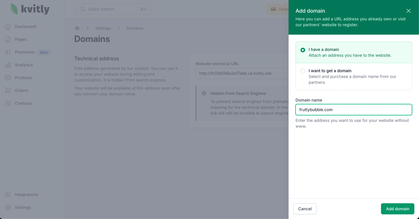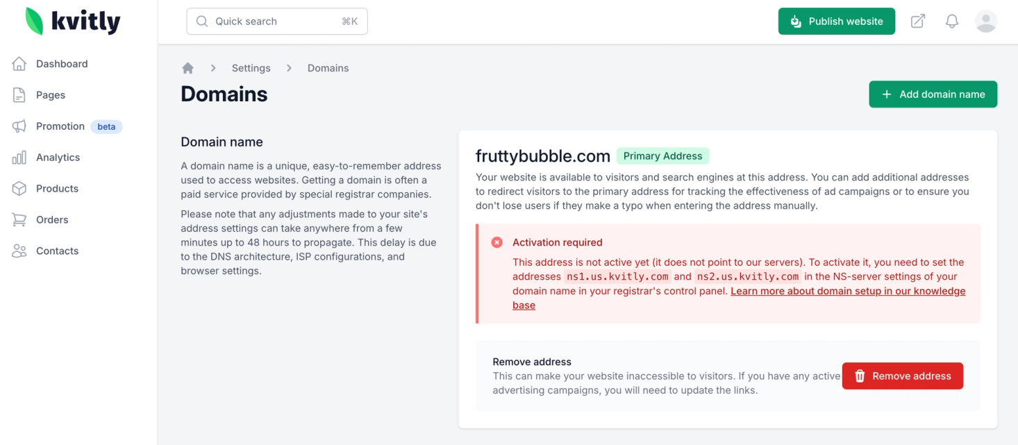 That’s all on 🌱kvitly side. Now you need to configure the domain on the registrar panel as described in the section below.
