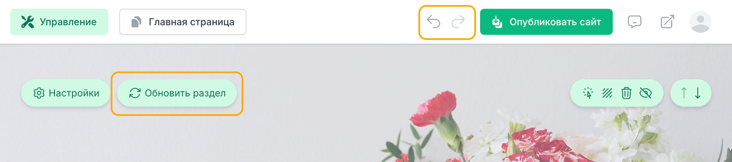 Просто и удобно. Теперь у каждого раздела есть кнопка «Обновить раздел». Если вы хотите переписать тексты или обновить изображения, просто нажмите на неё, и 🌱 kvitly спросит, о чём вы хотите рассказать, напишет новый текст и подберет картинки с иконками.