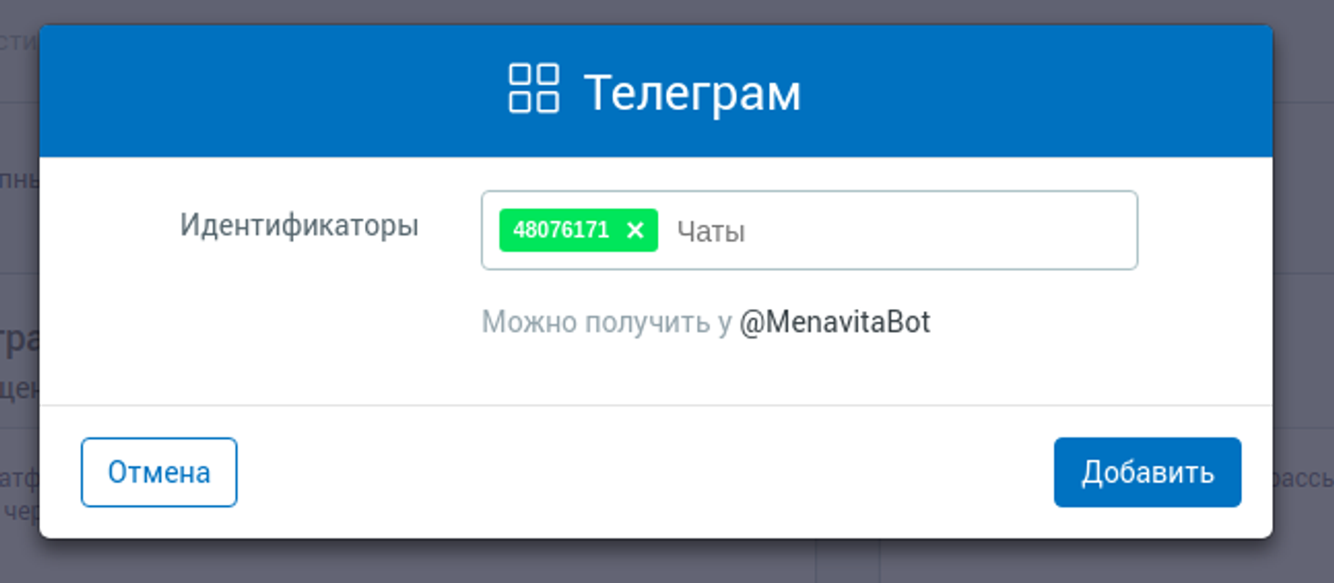 Полученный идентификатор нужно указать в настройках расширения. И всё! Кстати, вы можете указывать несколько идентификаторов, чтобы отправлять оповещения разным людям.