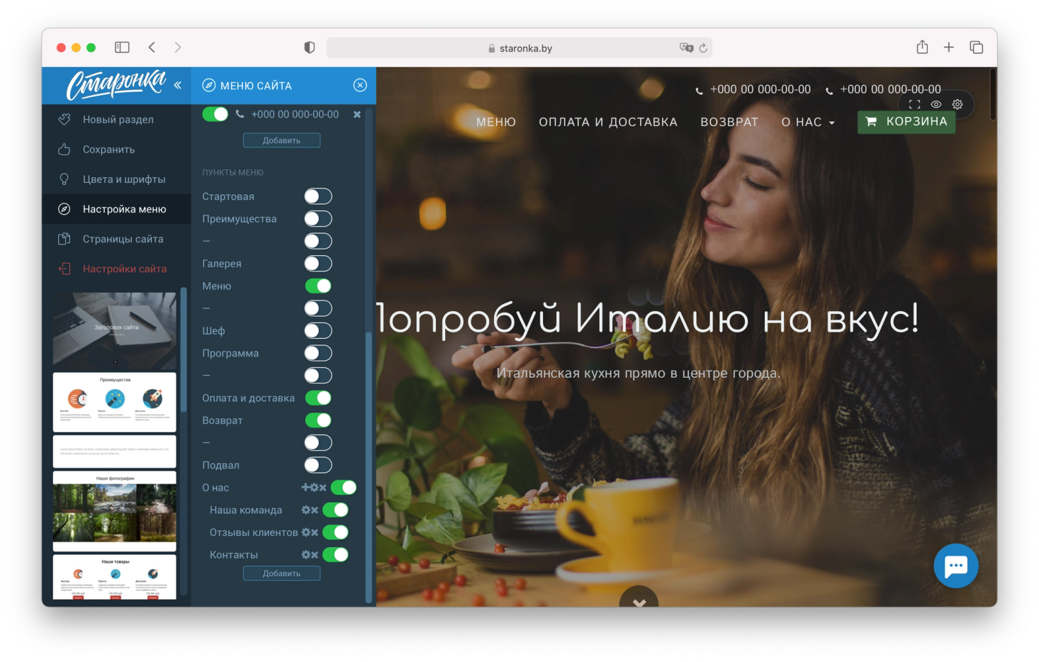 Принцип добавления пункта и подпункта в меню страницы точно такой же, как для меню сайта, за небольшим исключением: пункты в меню лендинга добавляются в соответствии с порядком разделов на странице. Редактировать их названия, а также отображать, либо скрывать из меню можно в настройках каждого раздела.
