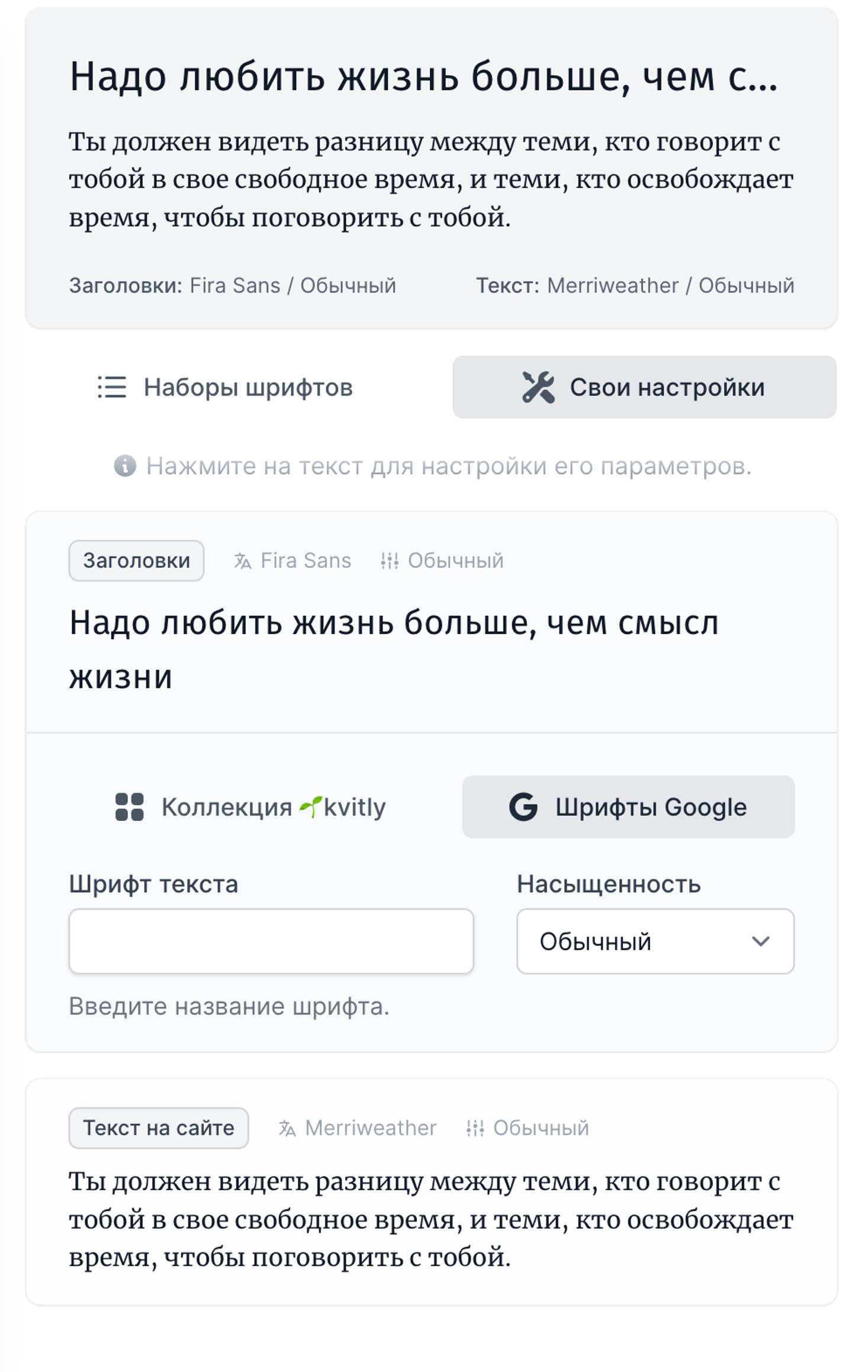 Для каждого шрифта есть возможность настроить насыщенность.