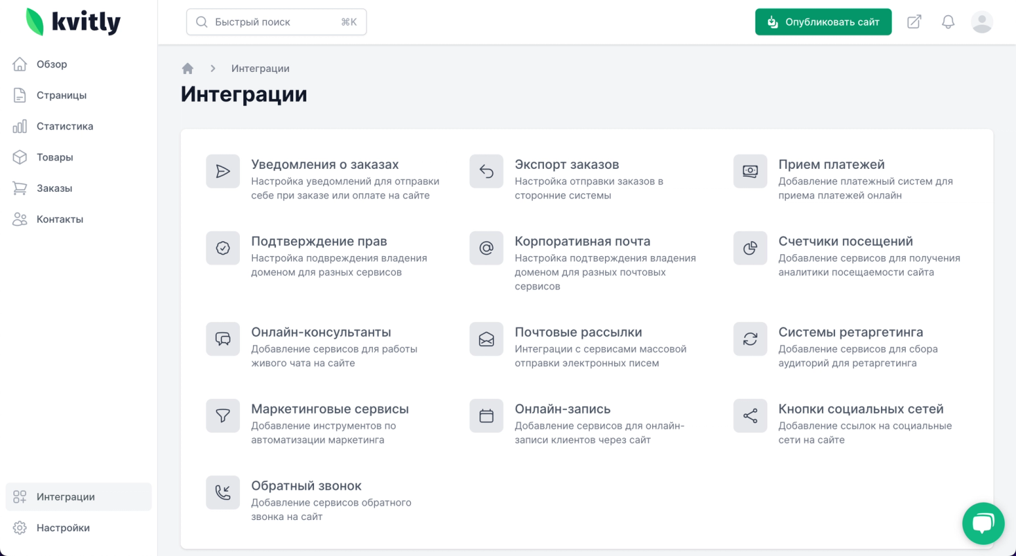 Мы всегда готовы помочь вам с запуском сайта или ответить на любые вопросы по работе с 🌱kvitly.