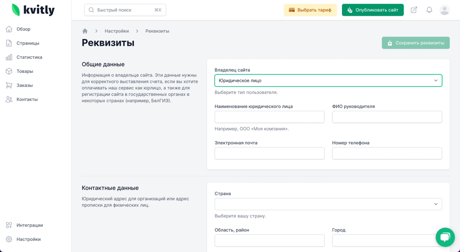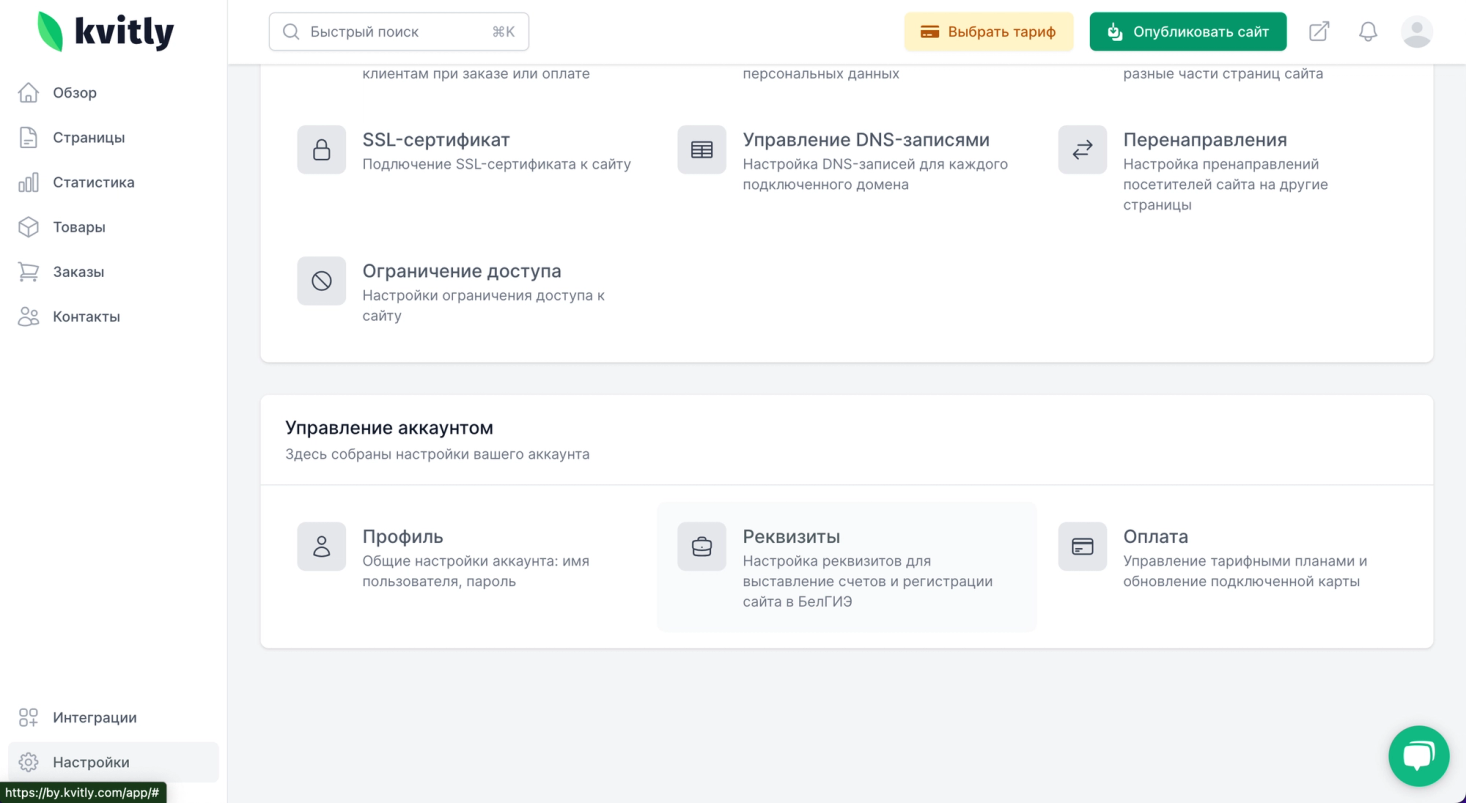 В 🌱kvitly регистрация в БелГИЭ бесплатна. Чтобы заявка была подана, необходимо заполнить поля в разделе «Реквизиты» и сообщить о своем желании зарегистрировать сайт в поддержку в чате на сайте или по электронной почте help@kvitly.com После регистрации сайта в БелГИЭ вы будете являться официальным владельцем сайта.